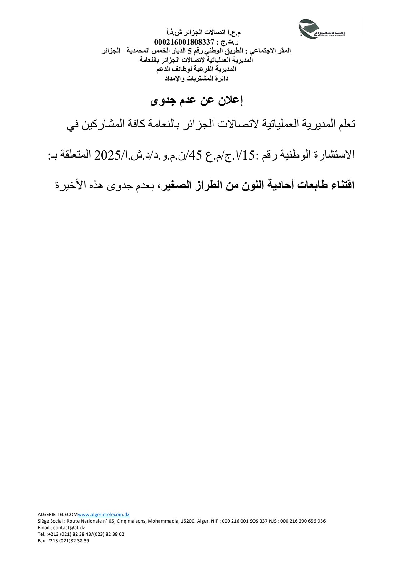 إعلان عن استشارة وطنية رقم 15/ 2025